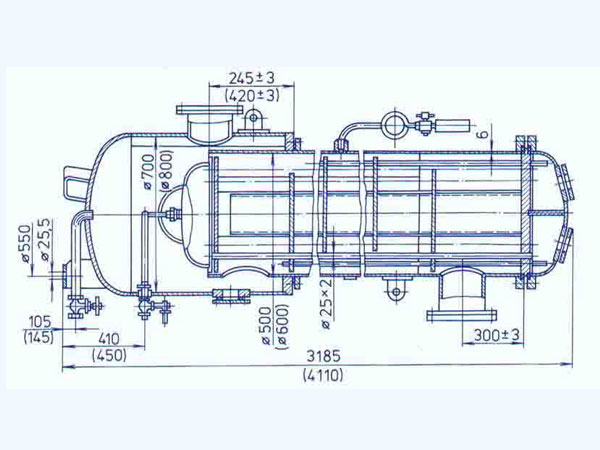 Цилиндрический кожух оснащен с эллиптическим днищем, которое скреплено с верхней эллиптической камерой с помощью фланцев, гарантирующих плотное прилегание и надежную фиксацию элементов.